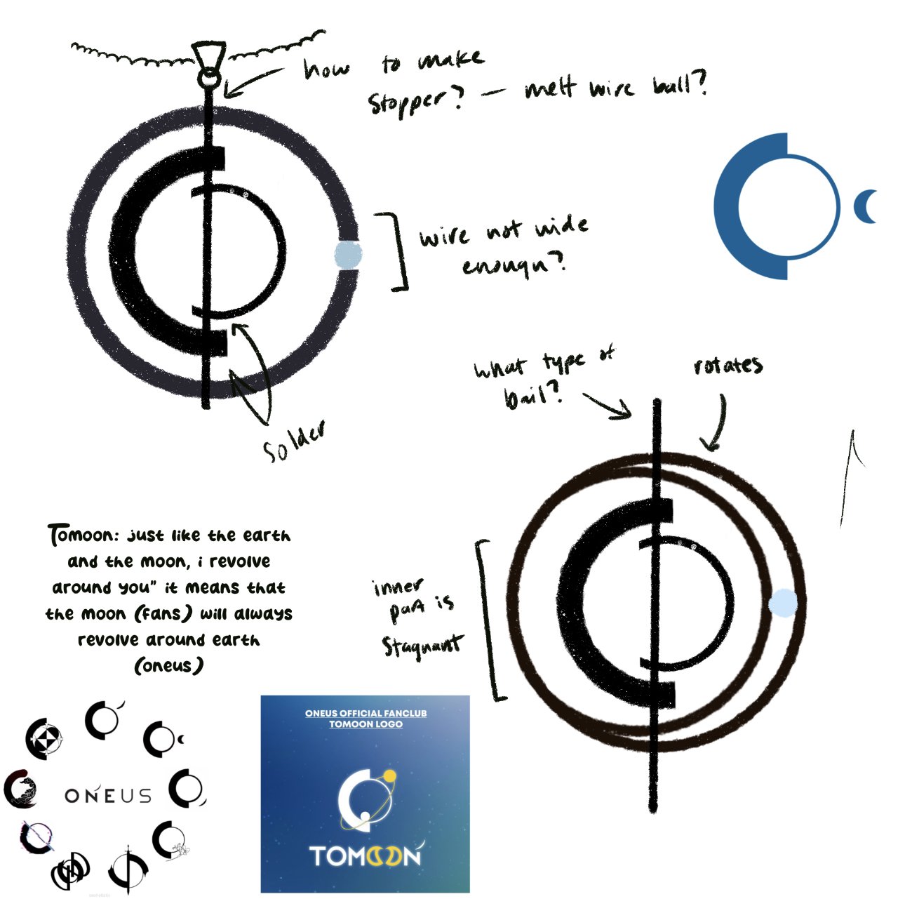 The reason why I chose the sky blue topaz was because the official colors of Oneus is blue and green, however blue is often the more used color. The center circle piece is soldered to the middle rod preventing it from spinning, while the outer circle has the freedom to spin. This represents their fandom name TOMOON which has an Earth to Moon metaphor meaning— “just like the Earth (representing Oneus) and the Moon (Fans), I revolve around you”.